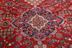 This carpet is knotted in the town of Joshaghan in central Iran. The town is known for its famous carpet weaving traditions, old style weaving, interesting designs and the fast and limpid colours. On this carpet medallions with rombs are the most common, but also mina khani, gül in henna and weeping willow-motifs occur. The ground colour is often blue, beige or red and a newly made carpet is considered to be of good quality.