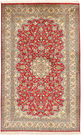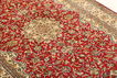 Kashmir silk carpets are hand-knotted in India, and are modelled on traditional Persian carpets. The oriental patterns in the carpets consist partly of medallions and repeating patters, but with the typical garden motif. The carpets are very high quality and thanks to the choice of material of silk, they are thin and light, with a beautiful shimmering lustre. Using silk also makes detailed patterns possible and the precision in the work behind the carpet is impressive. These beautiful Kashmir carpets in silk would give any room a lift and you're getting a lot of carpet for your money.