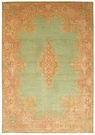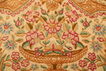 This carpet is knotted in workshops in the city of Kerman in southeastern Persia. A large number of carpets are sold to the courts around the world. The ground colour is often red, and the pattern is dominated by a large medallion and a wide border filled with flowers.