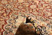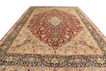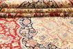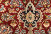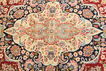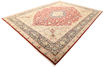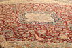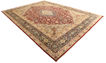 This carpet is knotted in workshops in the city of Kerman in southeastern Persia. A large number of carpets are sold to the courts around the world. The ground colour is often red, and the pattern is dominated by a large medallion and a wide border filled with flowers.