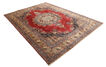 This carpet is knotted in Mashad the capital in the province of Khorasan, an area in norteastern Persia. The patterns are often medallions in dark blue-red and blue nuances and the wool in the carpet is very soft. The Mashad carpets often resemble some Keshan carpets.
