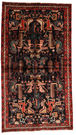 This carpet is knotted in the Hamadan area in northwestern Persia. The carpet is roughly knotted with shiny wool and are of high quality. The colours are usually red or blue with pattern consisting elements of nomadic and geometric motifs. Medallions can also occur.