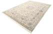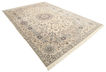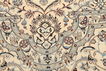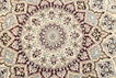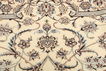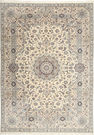 This carpet is knotted in workshops in the city of Nain in central Persia, near Isfahan. The carpet is generally very light with a cream-coloured or deep-blue bottom colour and a large medallion in the centre. The high knot density and high class material makes these carpets of very high quality. Silk might occur and 6La means that three pairs of threads are used for every warp thread. They are manufactured in most sizes and the carpet is among the most beautiful in the world and very popular among collectors. Habibian is one of the most famous carpet knotters in modern times.