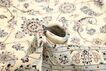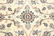This carpet is knotted in workshops in the city of Nain in central Persia, near Isfahan. The carpet is generally very light with a cream-coloured or deep-blue bottom colour and a large medallion in the centre. The high knot density and high class material makes these carpets of very high quality. Silk might occur and 6La means that three pairs of threads are used for every warp thread. They are manufactured in most sizes and the carpet is among the most beautiful in the world and very popular among collectors. Habibian is one of the most famous carpet knotters in modern times.
