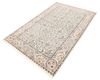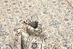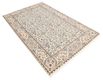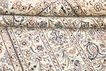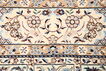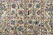 This carpet is knotted in workshops in the city of Nain in central Persia, near Isfahan. The carpet is generally very light with a cream-coloured or deep-blue bottom colour and a large medallion in the centre. The high knot density and high class material makes these carpets of very high quality. Silk might occur and 6La means that three pairs of threads are used for every warp thread. They are manufactured in most sizes and the carpet is among the most beautiful in the world and very popular among collectors. Habibian is one of the most famous carpet knotters in modern times.