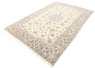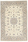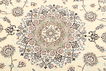 This carpet is knotted in workshops in the city of Nain in central Persia, near Isfahan. The carpet is generally very light with a cream-coloured or deep-blue bottom colour and a large medallion in the centre. The high knot density and high class material makes these carpets of very high quality. Silk might occur and 6La means that three pairs of threads are used for every warp thread. They are manufactured in most sizes and the carpet is among the most beautiful in the world and very popular among collectors. Habibian is one of the most famous carpet knotters in modern times.