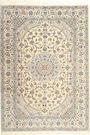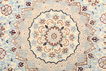 This carpet is knotted in workshops in the city of Nain in central Persia, near Isfahan. The carpet is generally very light with a cream-coloured or deep-blue bottom colour and a large medallion in the centre. The high knot density and high class material makes these carpets of very high quality. Silk might occur and 6La means that three pairs of threads are used for every warp thread. They are manufactured in most sizes and the carpet is among the most beautiful in the world and very popular among collectors. Habibian is one of the most famous carpet knotters in modern times.
