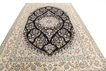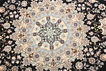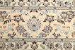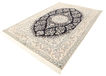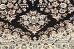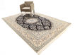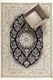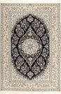 This carpet is knotted in workshops in the city of Nain in central Persia, near Isfahan. The carpet is generally very light with a cream-coloured or deep-blue bottom colour and a large medallion in the centre. The high knot density and high class material makes these carpets of very high quality. Silk might occur and 6La means that three pairs of threads are used for every warp thread. They are manufactured in most sizes and the carpet is among the most beautiful in the world and very popular among collectors. Habibian is one of the most famous carpet knotters in modern times.