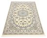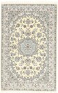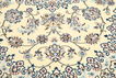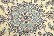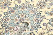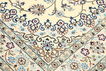 This carpet is knotted in workshops in the city of Nain in central Persia, near Isfahan. The carpet is generally very light with a cream-coloured or deep-blue bottom colour and a large medallion in the centre. The high knot density and high class material makes these carpets of very high quality. Silk might occur and 6La means that three pairs of threads are used for every warp thread. They are manufactured in most sizes and the carpet is among the most beautiful in the world and very popular among collectors.