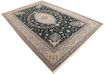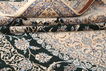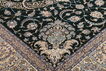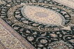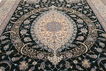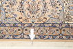 This carpet is knotted in workshops in the city of Nain in central Persia, near Isfahan. The carpet is generally very light with a cream-coloured or deep-blue bottom colour and a large medallion in the centre. The high knot density and high class material makes these carpets of very high quality. Silk might occur and 6La means that three pairs of threads are used for every warp thread. They are manufactured in most sizes and the carpet is among the most beautiful in the world and very popular among collectors.