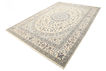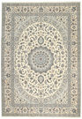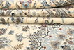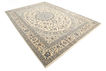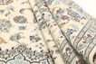 This carpet is knotted in workshops in the city of Nain in central Persia, near Isfahan. The carpet is generally very light with a cream-coloured or deep-blue bottom colour and a large medallion in the centre. The high knot density and high class material makes these carpets of very high quality. Silk might occur and 6La means that three pairs of threads are used for every warp thread. They are manufactured in most sizes and the carpet is among the most beautiful in the world and very popular among collectors.