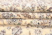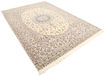 This carpet is knotted in workshops in the city of Nain in central Persia, near Isfahan. The carpet is generally very light with a cream-coloured or deep-blue bottom colour and a large medallion in the centre. The high knot density and high class material makes these carpets of very high quality. Silk might occur and 6La means that three pairs of threads are used for every warp thread. They are manufactured in most sizes and the carpet is among the most beautiful in the world and very popular among collectors.