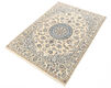 This carpet is knotted in workshops in the city of Nain in central Persia, near Isfahan. The carpet is generally very light with a cream-coloured or deep-blue bottom colour and a large medallion in the centre. The high knot density and high class material makes these carpets of very high quality. They are manufactured in most sizes and the carpet is among the most beautiful in the world and very popular among collectors.