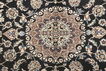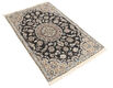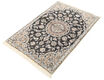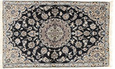 These carpets are knotted in workshops in the city of Nain in central Persia, near Isfahan. The carpets are generally very light with a cream-coloured or deep-blue bottom colour and a large medallion in the center. High knot density and high-class material gives carpets of high quality. Silk migth occur and 6La means that three pairs of threads are used for every warp-thread. They are manufactured in most sizes and the carpets are among the most beautiful in the world and very popular among collectors.