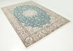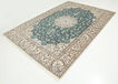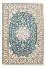 This carpet is knotted in workshops in the city of Nain in central Persia, near Isfahan. The carpet is generally very light with a cream-coloured or deep-blue bottom colour and a large medallion in the centre. The high knot density and high class material makes these carpets of very high quality. They are manufactured in most sizes and the carpet is among the most beautiful in the world and very popular among collectors.