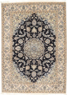 This carpet is knotted in workshops in the city of Nain in central Persia, near Isfahan. The carpet is generally very light with a cream-coloured or deep-blue bottom colour and a large medallion in the centre. The high knot density and high class material makes these carpets of very high quality. They are manufactured in most sizes and the carpet is among the most beautiful in the world and very popular among collectors.