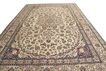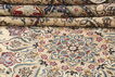 This carpet is knotted in workshops in the city of Nain in central Persia, near Isfahan. The carpet is generally very light with a cream-coloured or deep-blue bottom colour and a large medallion in the centre. The high knot density and high class material makes these carpets of very high quality. They are manufactured in most sizes and the carpet is among the most beautiful in the world and very popular among collectors.