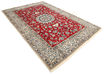 This carpet is knotted in workshops in the city of Nain in central Persia, near Isfahan. The carpet is generally very light with a cream-coloured or deep-blue bottom colour and a large medallion in the center. High knot density and high-class material gives carpets of high quality. They are manufactured in most sizes and the carpet is among the most beautiful in the world and very popular among collectors.
