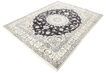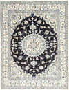 This carpet is knotted in workshops in the city of Nain in central Persia, near Isfahan. The carpet is generally very light with a cream-coloured or deep-blue bottom colour and a large medallion in the center. High knot density and high-class material gives carpets of high quality. They are manufactured in most sizes and the carpet is among the most beautiful in the world and very popular among collectors.