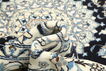 This carpet is knotted in workshops in the city of Nain in central Persia, near Isfahan. The carpet is generally very light with a cream-coloured or deep-blue bottom colour and a large medallion in the center. High knot density and high-class material gives carpets of high quality. They are manufactured in most sizes and the carpet is among the most beautiful in the world and very popular among collectors.