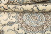 This carpet is knotted in workshops in the city of Nain in central Persia, near Isfahan. The carpet is generally very light with a cream-coloured or deep-blue bottom colour and a large medallion in the center. High knot density and high-class material gives carpets of high quality. They are manufactured in most sizes and the carpet is among the most beautiful in the world and very popular among collectors.