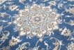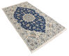 This carpet is knotted in workshops in the city of Nain in central Persia, near Isfahan. The carpet is generally very light with a cream-coloured or deep-blue bottom colour and a large medallion in the center. High knot density and high-class material gives carpets of high quality. They are manufactured in most sizes and the carpet is among the most beautiful in the world and very popular among collectors.