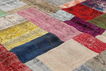 Patchworks are produced of older Turkish carpets. These have been cut in smaller pieces and sewn together in new designs and sizes. Colours and designs are harmonic and specially chosen. A backside has been sewn on. Patchworks are produced of rug that are between 20 and 50 years old.