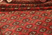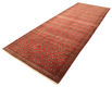 This carpet is knotted in Turkmenistan. Both wool and silk are used for the pile. The patterns are repetative with Göl and often wide borders on the shorter sides, but not on the long-sides. Red, the whole scale from violet to brown, are the dominating colour. The carpet is an excellent piece of craftmanship.