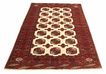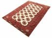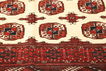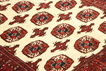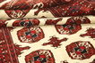 This carpet is knotted in Turkmenistan. Both wool and silk are used for the pile. The patterns are repetative with Göl and often wide borders on the shorter sides, but not on the long-sides. Red, the whole scale from violet to brown, are the dominating colour. The carpet is an excellent piece of craftmanship.