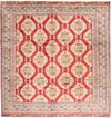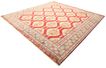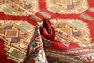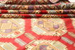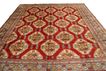 This carpet is knotted in Turkmenistan. Both wool and silk are used for the pile. The patterns are repetative with Göl and often wide borders on the shorter sides, but not on the long-sides. Red, the whole scale from violet to brown, are the dominating colour. The carpet is an excellent piece of craftmanship.