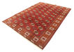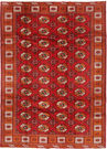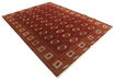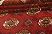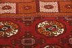 This carpet is knotted in Turkmenistan. Both wool and silk are used for the pile. The patterns are repetative with Göl and often wide borders on the shorter sides, but not on the long-sides. Red, the whole scale from violet to brown, are the dominating colour. The carpet is an excellent piece of craftmanship.