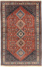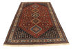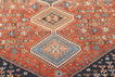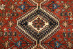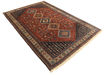 This carpet is knotted by the nomadic Yalameh-tribe that wanders in the Fars province in southern Persia. The carpet is known for its distinctive richness in the pattern and strong deep colours. Sometimes in the pattern, diamond shaped medallions occur in a straight line. The carpet is considered to be of very high quality.