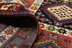 This carpet is knotted by the nomadic Yalameh-tribe that wanders in the Fars province in southern Persia. The carpet is known for its distinctive richness in the pattern and strong deep colours. Sometimes in the pattern, diamond shaped medallions occur in a straight line. The carpet is considered to be of very high quality.