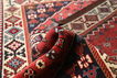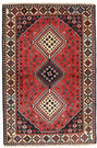 This carpet is knotted by the nomadic Yalameh-tribe that wanders in the Fars province in southern Persia. The carpet is known for its distinctive richness in the pattern and strong deep colours. Sometimes in the pattern, diamond shaped medallions occur in a straight line. The carpet is considered to be of very high quality.
